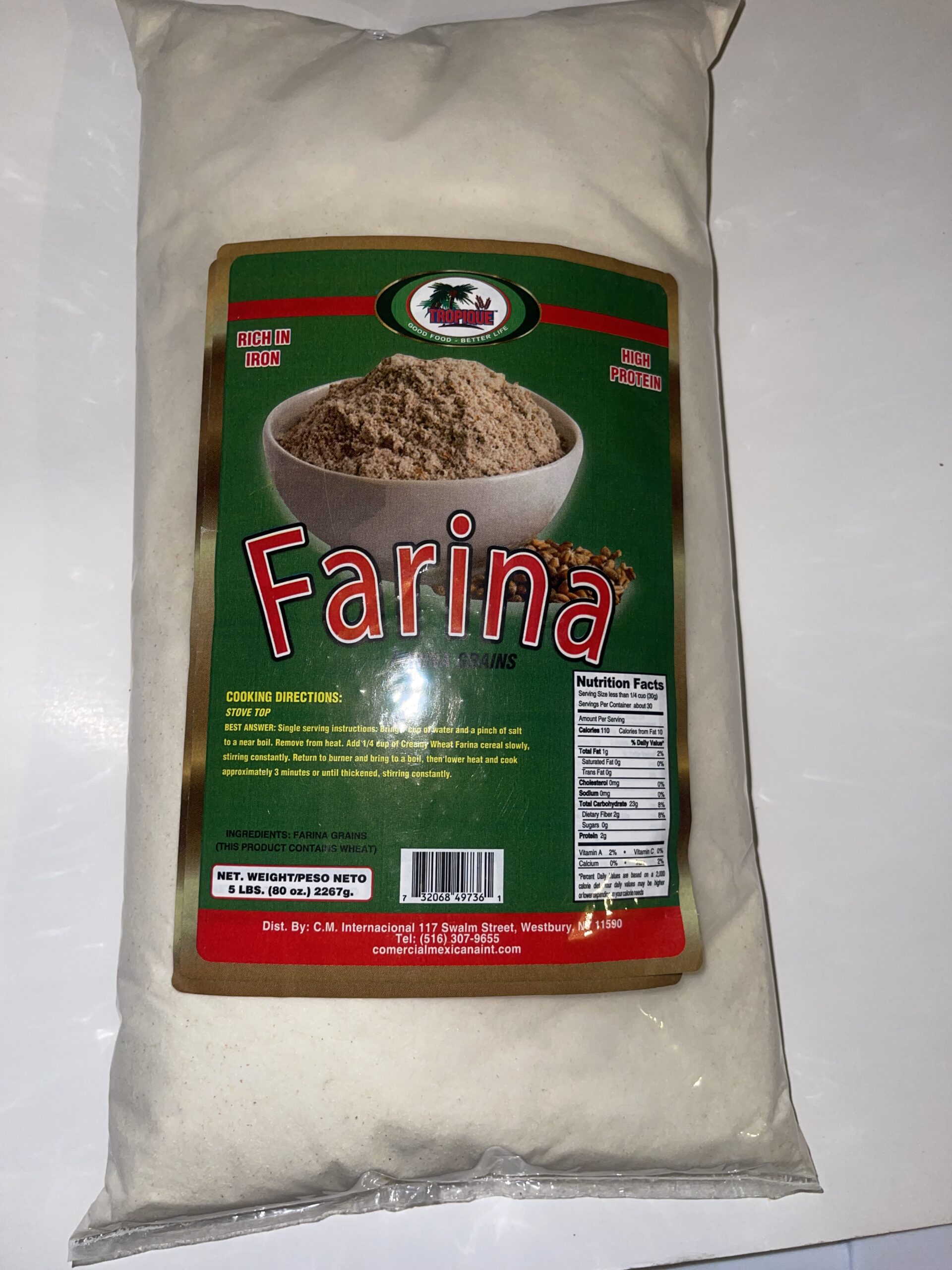 Farina is a type of milled wheat product that is commonly used in cooking and baking. It is made from finely ground wheat kernels, typically the inner, softer parts of the wheat grain, known as the endosperm. Farina has a fine, powdery texture and is often used to make hot cereals, such as cream of wheat or farina porridge, by cooking it with milk or water and sweetening it with sugar or honey. It can also be used as a thickening agent for soups, stews, and gravies. Farina is appreciated for its versatility and its ability to create creamy, smooth textures in various dishes.